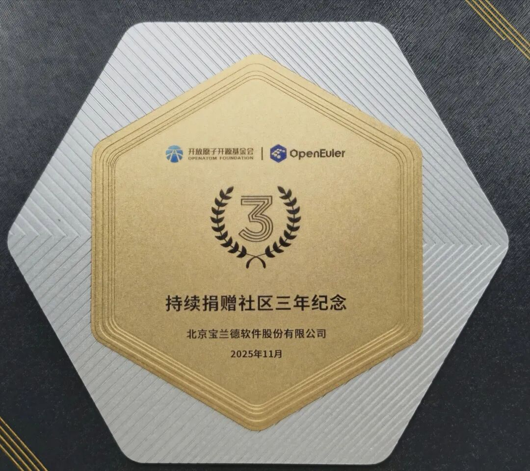 11月21日,2025开放原子开发者大会在北京盛大召开。本次大会是开源领域的年度盛会,吸引了全球顶尖开发者与领先企业的目光。作为openEuler社区连续三年捐赠人,宝兰德凭借在基础软件领域的卓越贡献与创新实践,荣获社区颁发的荣誉奖杯。