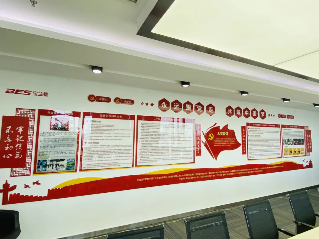 走进宝兰德党员活动中心,首先被庄重热烈的氛围所感染:凸显的入党誓词字字靓丽生辉,撩动着每一位党员最初的发愿。高悬的党旗上方醒目的横幅、飘逸两侧的对联,字字句句皆是对党员精神的深情召唤。其中,“四为”理念更是宝兰德企业创业精神的精髓所在,它深刻阐述了在时代大潮中昭示党员和公司员工在这样的大格局下“知使命就要有担当、有贡献就会有荣耀!”。四周展板内容无不彰显着宝兰德“自主自强、诚信遵法、创新进取、赋能发展”的先进企业文化与责任担当。站在《伟大旗帜、核心引领》《党的二十大、二十届三中全会精神撷英》一张张展板面前:“数字强国”、“科技强国”、“人才强国”……这些字眼,以及关于新质生产力、支持民营企业发展等最新论断,无不摧人奋进!大家无不倍感激励和鞭策。