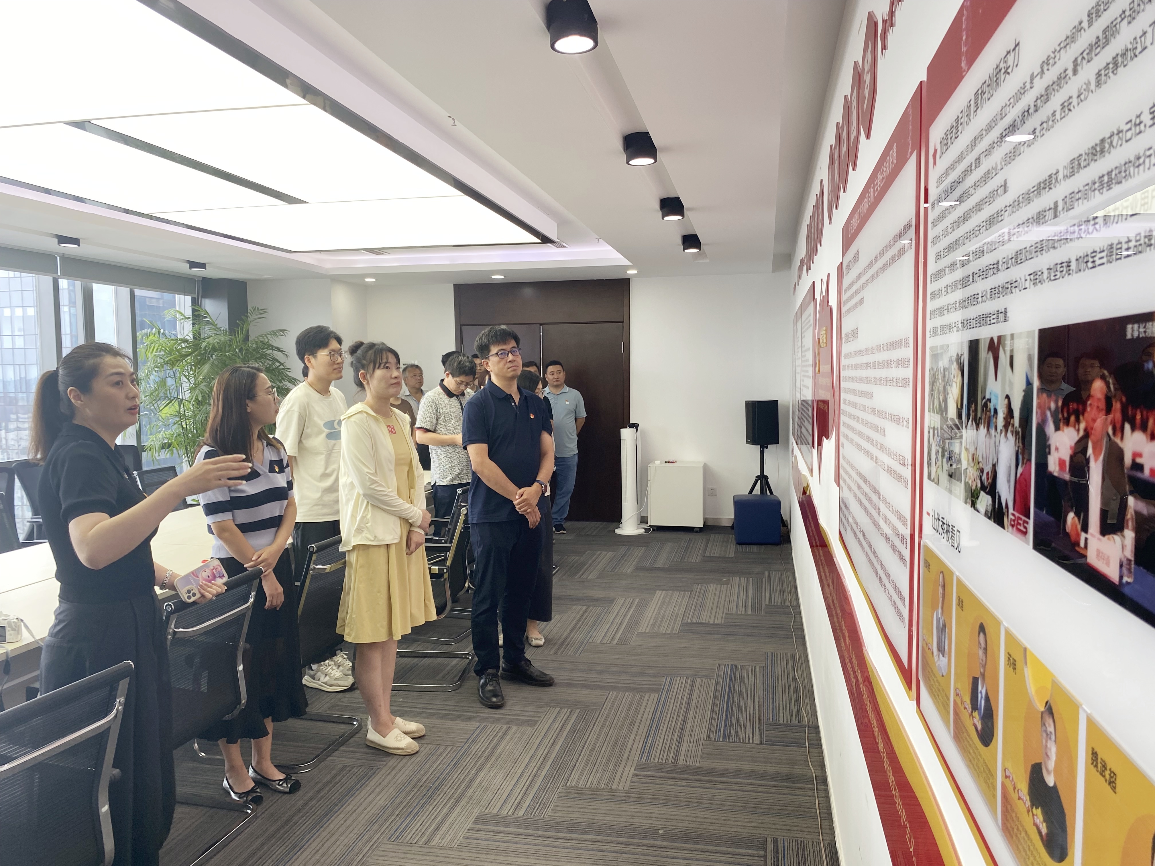 宝兰德党支部书记杨谊学同志结合二十届三中全会精神和企业实际,对新落成的活动中心内容布置进行了深度解读,结合镶嵌到展板上的一副副创意图片内涵的理解,指出在展示墙上方横匾上“永远跟党走,共筑中国梦”十个庄重醒目的大字,强烈表达了宝兰德作为改革开放政策环境下孕育成长的非公企业拥戴我们党、建功新时代的真挚情感和强烈心声;聚焦党旗两侧的“四为警句”彰显了宝兰德“为党增光、为国贡献、为企增效、为民造福”的创业宗旨,激励高新技术企业共产党员和员工树立大目标、放眼大格局、拥有大情怀,引领大家深刻体悟党的宗旨、企业趋向、员工志向的有机结合和内在统一;展板外侧16个飘逸的大字—“不忘初心,牢记使命;执着奋斗,强企有我”更是对每一位共产党员及员工发出的强烈感召;镶嵌在党旗中央的入党誓词和党旗下方的奋斗目标,将时刻提醒共产党员树牢共产主义远大理想,坚定崇高的政治信仰和信念。