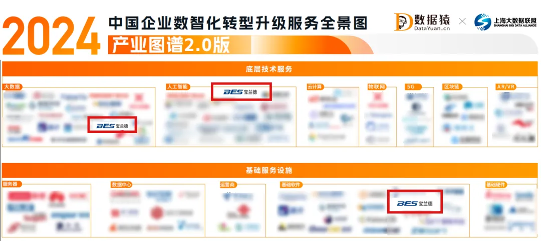 近日,数据猿正式发布了《2024中国企业数智化转型升级服务全景图/产业图谱2.0版》,对国内数智化转型领域具有突出市场表现和贡献的企业进行了汇总和集中展示。凭借深厚的技术实力及丰富的项目经验,宝兰德荣幸入选大数据、人工智能、基础软件等多个关键领域,彰显了其在推动企业数智化进程中的领先地位。