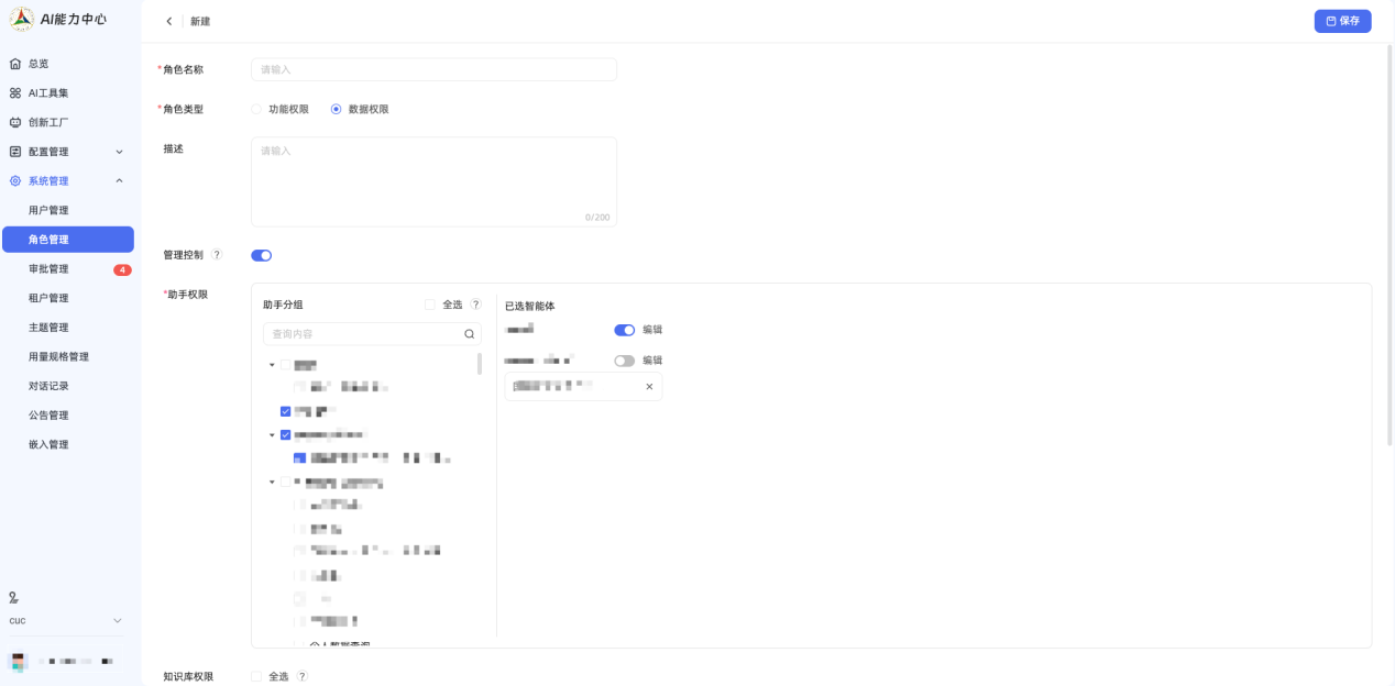 (2) 从用户层面控制数据权限,支持知识库、助手、对话记录等AI资源读写控制分离