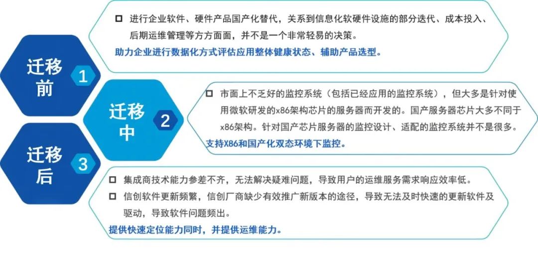 全栈式信创一体化监控运维管理系统以为企业国产化替代提供技术支撑能力为目标,护航企业国产化信创改造前、中、后全流程。