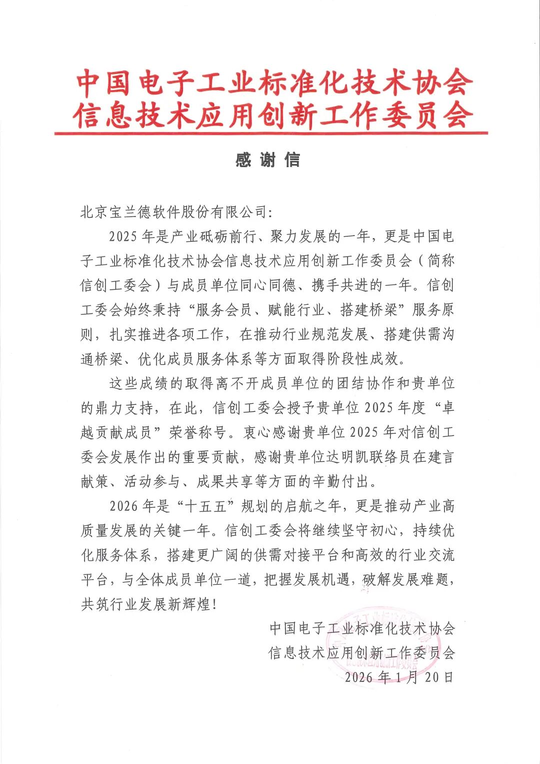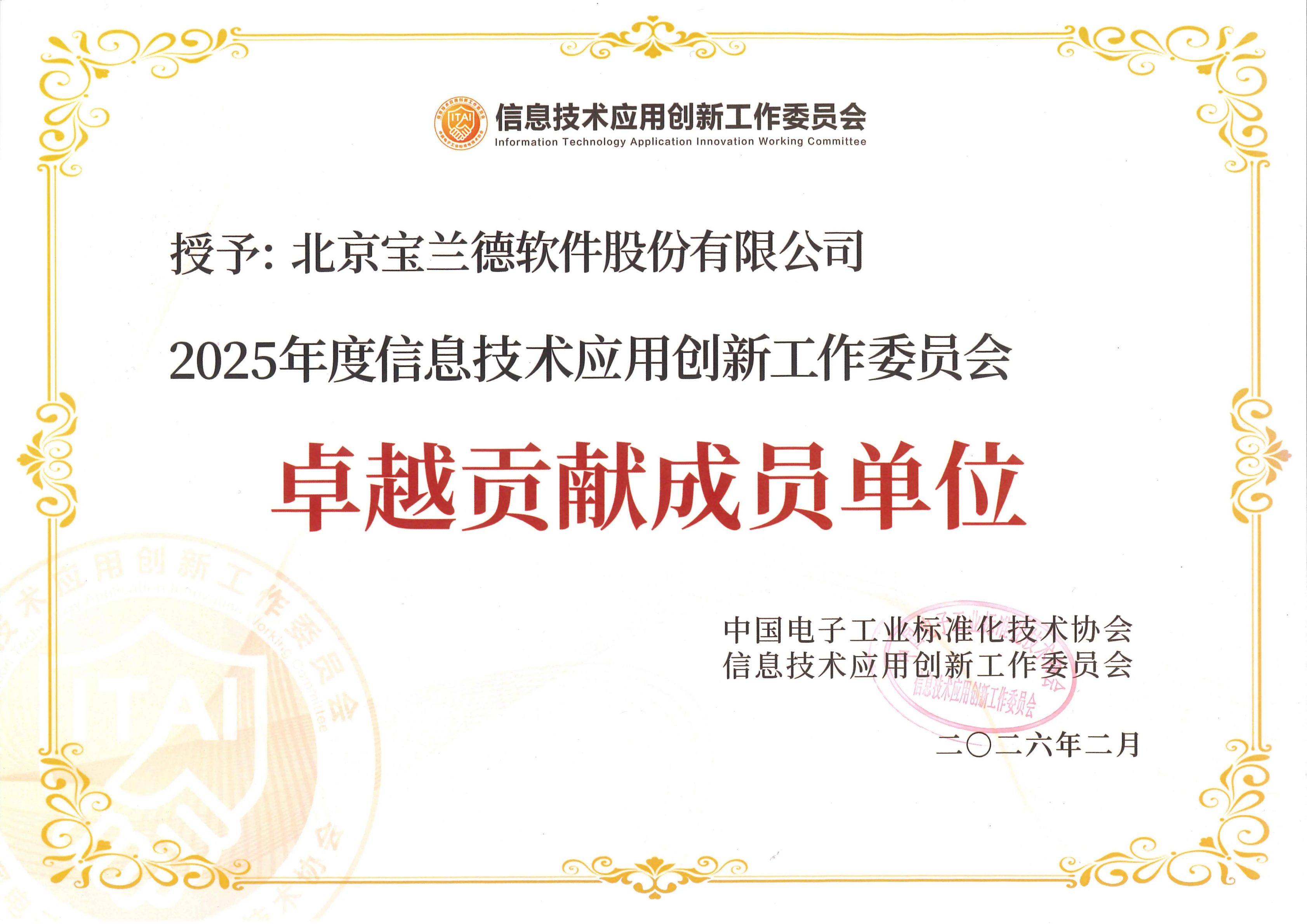 会上,宝兰德凭借在信创产业技术创新、标准建设及生态协同中的突出表现,再度荣膺2025 年度 “卓越贡献成员单位” 称号,这也是对宝兰德持续深耕信息技术应用创新领域、积极服务国家信创战略的充分肯定。