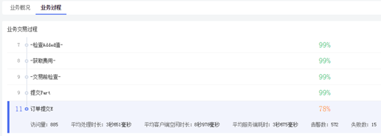 对于健康度异常的业务,我们可以查看是在哪个操作环节健康度较低,从而导致整个业务健康度异常。