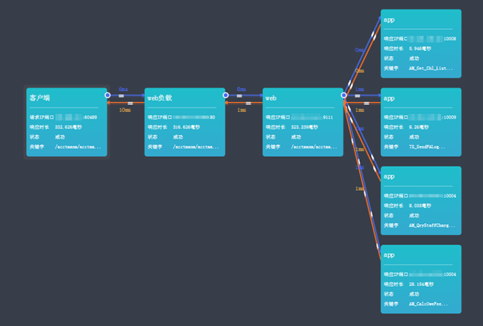 同时,WebGate BPM还提供了服务与服务之间的网络耗时,后续可进一步结合网络性能指标分析具体网络问题。