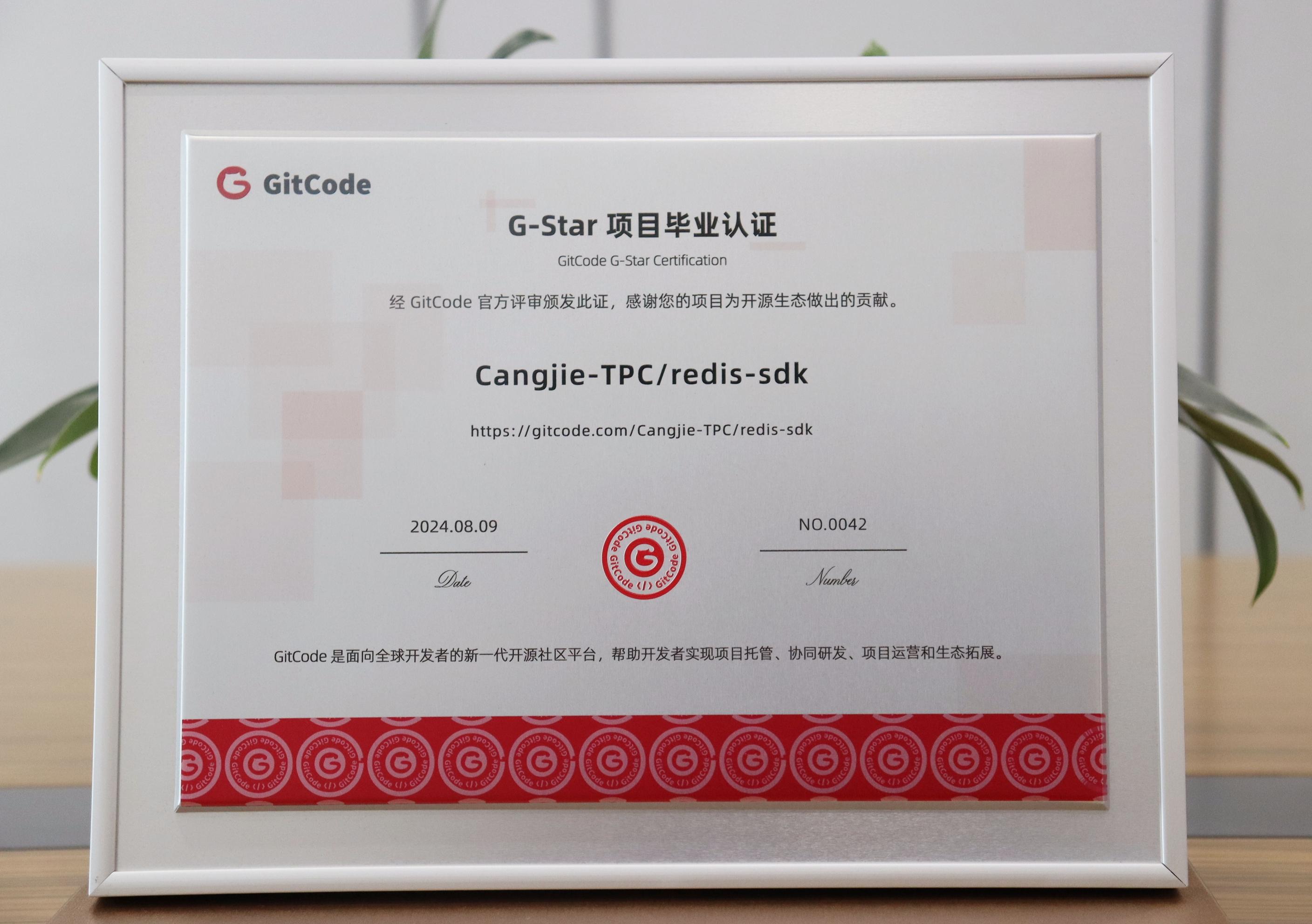 图 | Cangjie-TPC/redis-sdk项目毕业证书