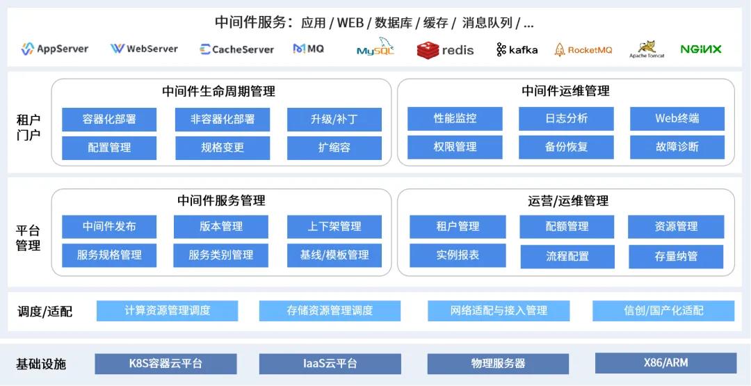 中间件服务化管理,自助开通,底层资源驰共享,资源利用率提升