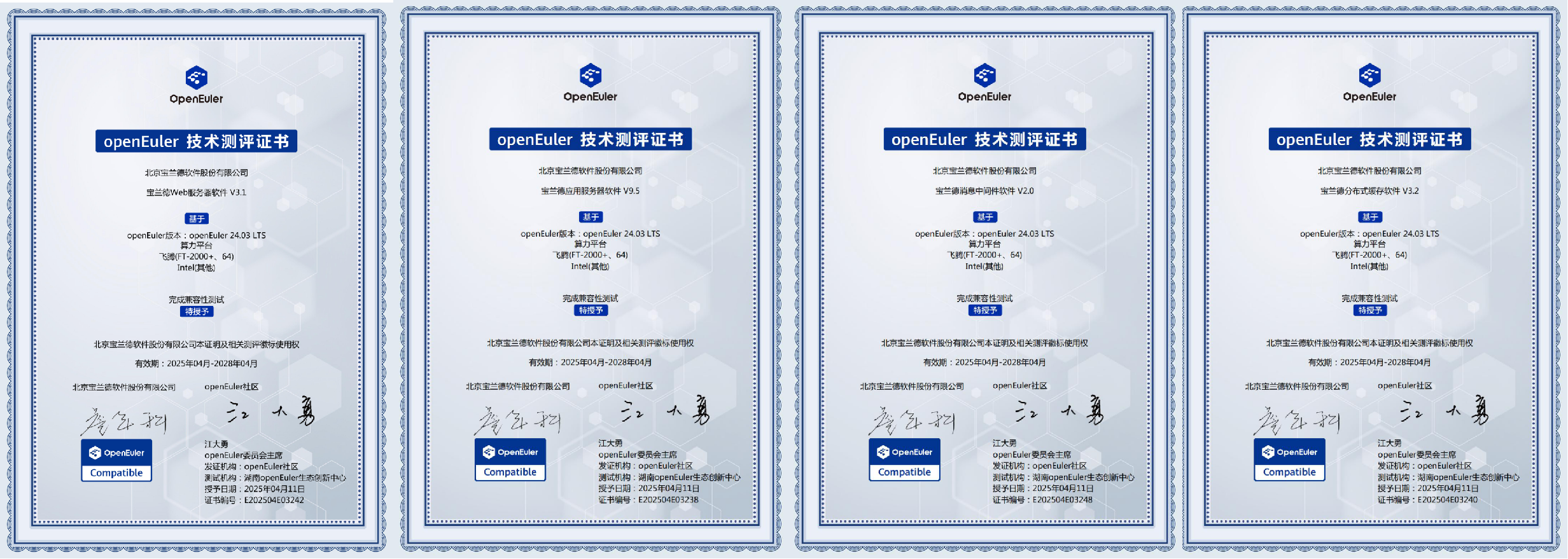 近日,宝兰德应用服务器软件、分布式缓存软件、Web服务器软件及消息中间件全线中间件产品,均通过欧拉(openEuler)技术测评,完成严格的兼容性认证,为行业用户提供了安全可靠、性能卓越的数字化基础设施选择,助力企业实现关键业务系统的自主可控。
