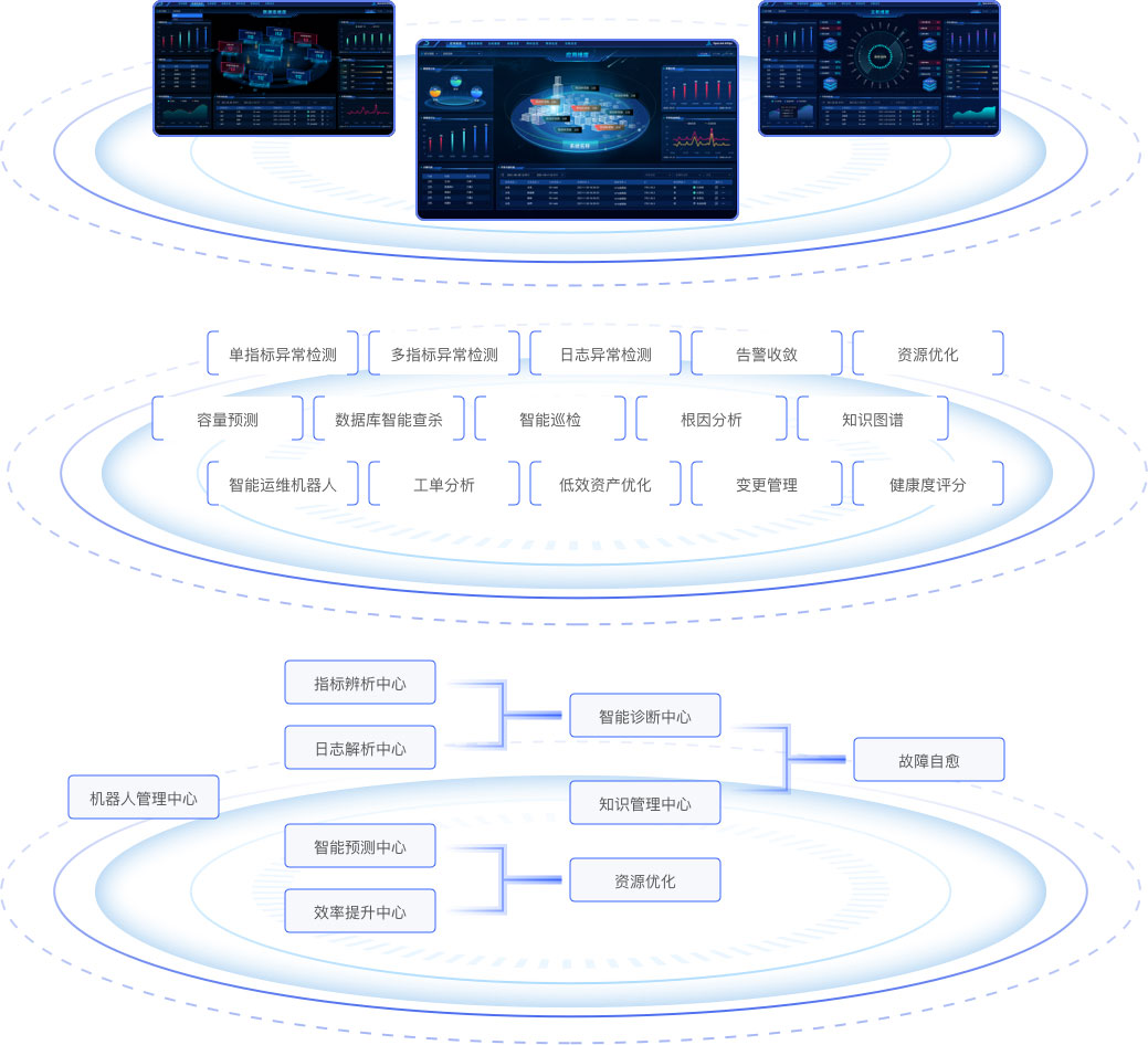 基于运维数据融合,提供跨系统、跨层次、跨应用的智能分析手段,助力运维场景智能化转型,有序智进人退。